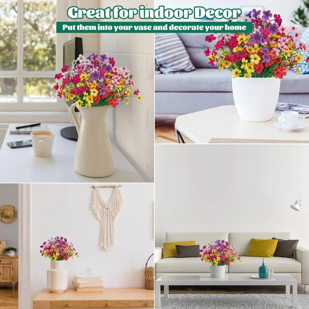 24 Pcs Artificial Flowers for Outdoor,Plastic Flowers Decoration, UV Resistant Faux Flowers Shrubs, Artificial Plants for Indoo