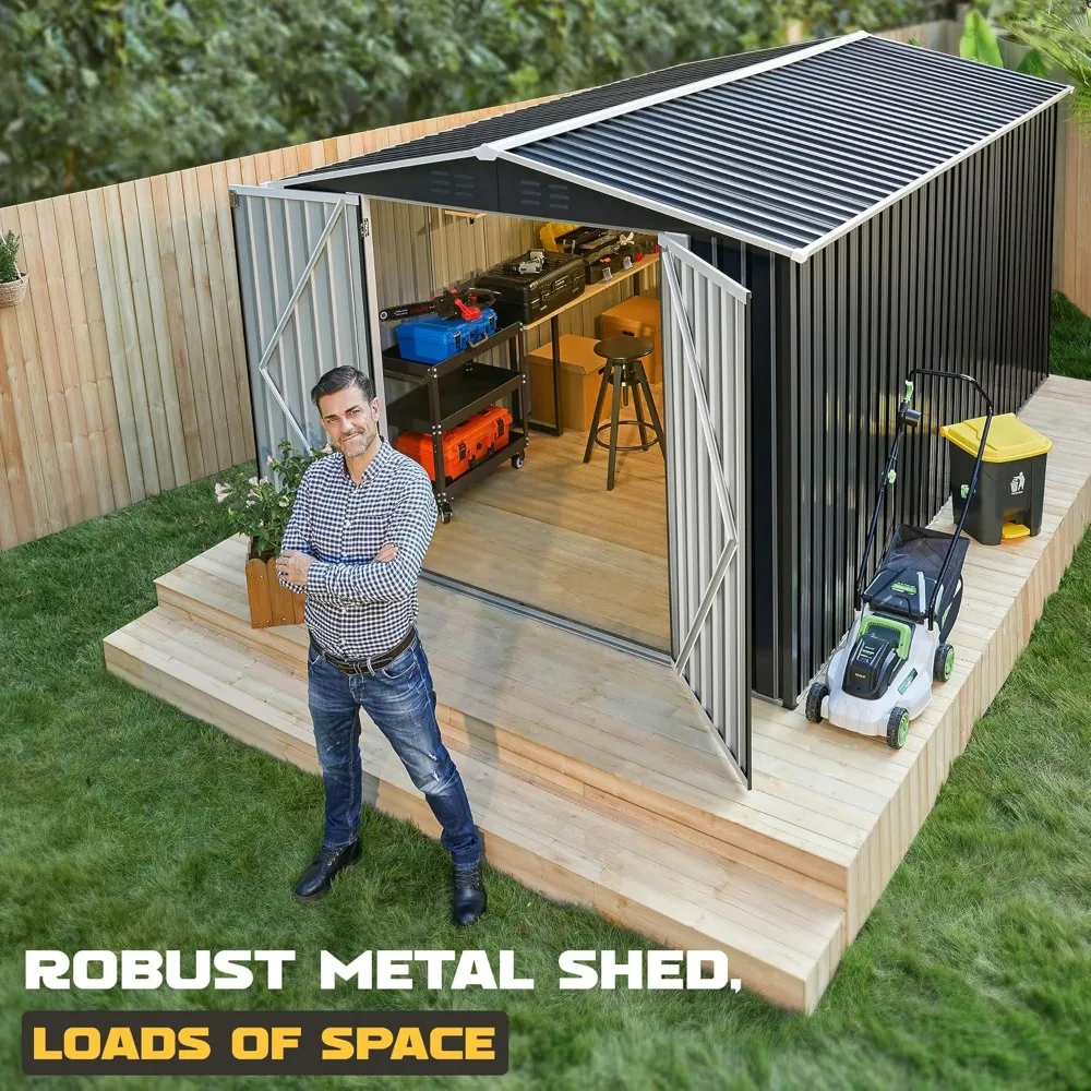 8 x 12 FT Outdoor Storage Shed, Metal Garden Shed with Updated Frame Structure, Tool Sheds for Backyard Garden Patio Lawn Black