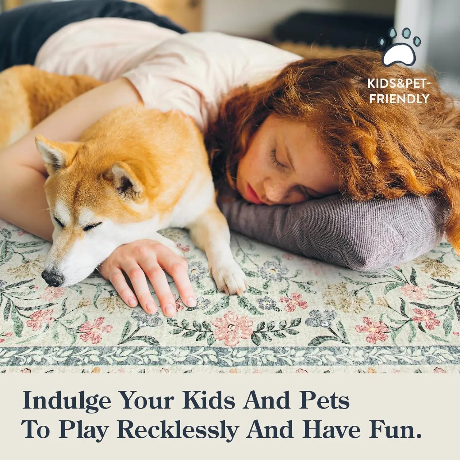 Boho Rugs for Living Room, Large 8 x 10 Area Rugs for Living Room Non Slip,Soft Ultra-Thin Distressed Floral Throw Carpet