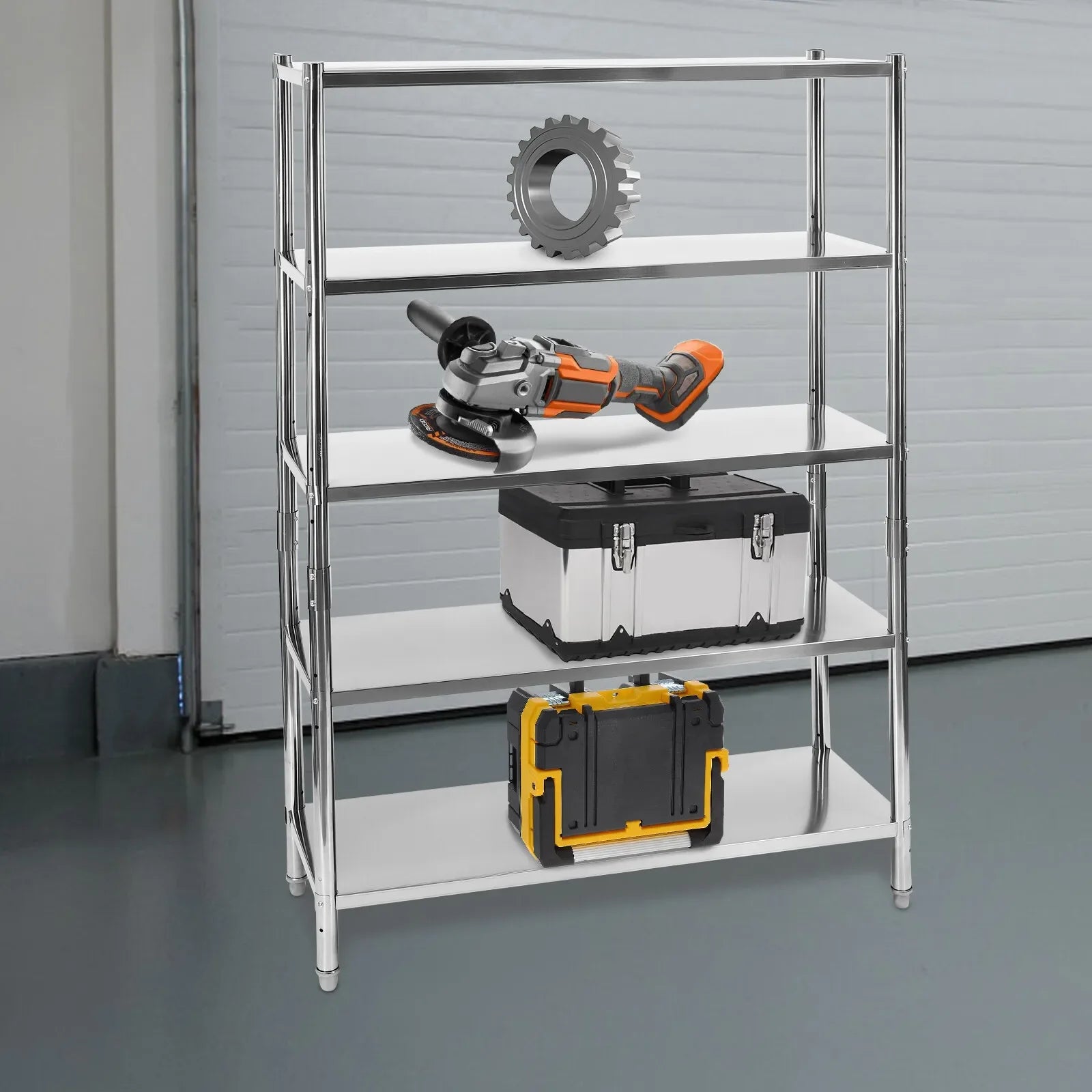 The combination of high-quality materials and exquisite craftsmanship makes this stainless steel shelving sturdy and durable. The strong load-bearing capacity allows you to store items with confidence. The generous appearance can decorate various storage areas. In addition, you can adjust the height of each layer according to different sizes of items. In short, it is an efficient solution for displaying and storing items.