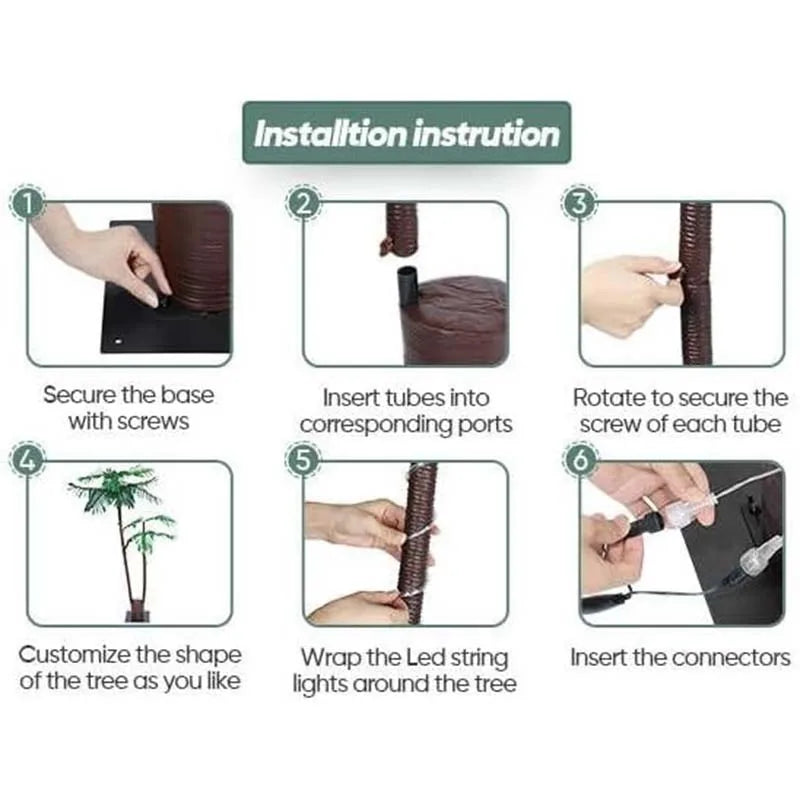 【Easy to Assemble】This artificial palm tree installation is very simple and convenient, just need to unscrew the bottom base, then connect the trunk, reinforce, and wrap the lamp belt can be. If you have any questions about the outdoor palm tree, please let us know. We're always ready to help you.