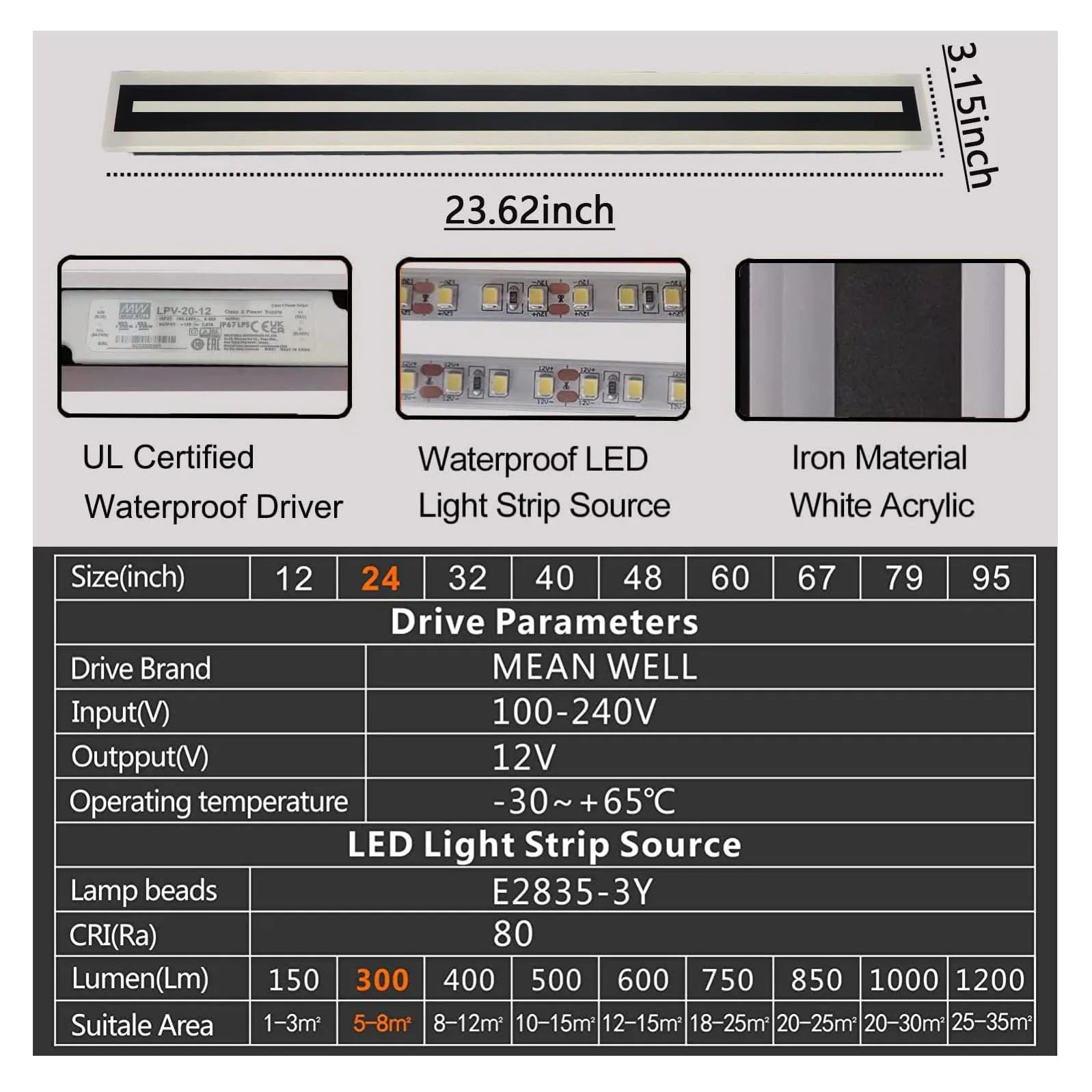 Outdoor Long Strip Modern LED Wall Lighting Fixture Lamps,Wall Sconce Fixture Wall lamp Elegant Frosted White Acrylic IP67 Anti