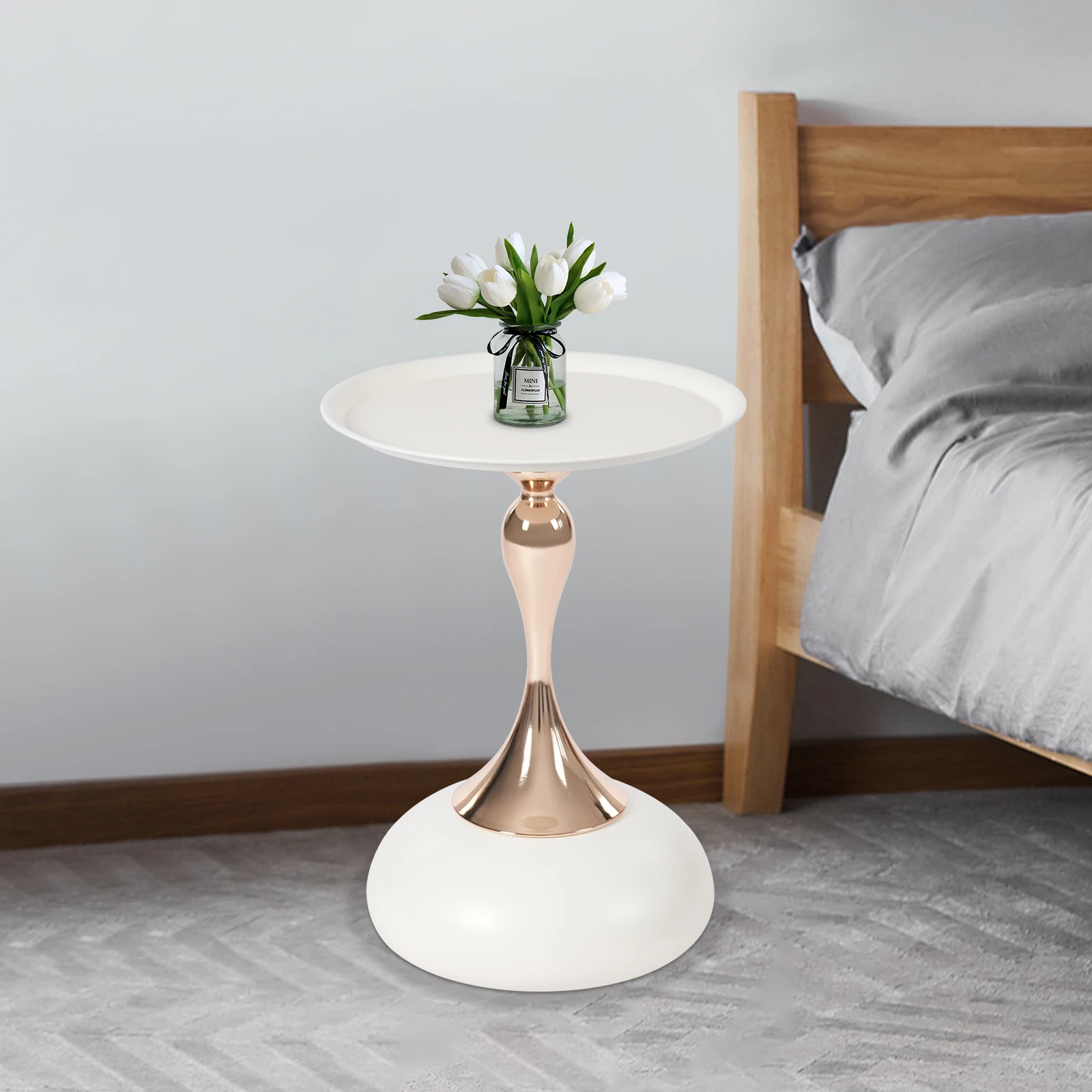 White, Round End Table, Metal Side Table Small Table, Floor Standing Sofa Side Table Nightstand, for Living Room Bedroom Office